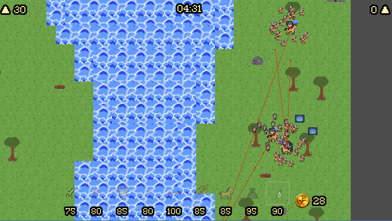 La base enemiga sempre està en el cantó inferior esquerra del mapa i les teues tropes sempre partiran de la teua base al cantó superior dreta del mapa.